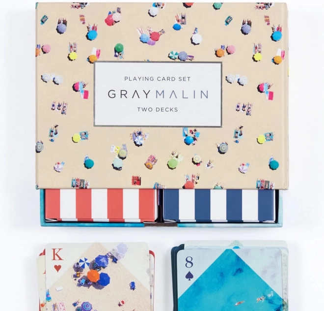 Uživajte u igranju karata s luksuznim setom Gray Malina, koji spaja funkcionalnost igre s umjetničkim prikazom plažnih scena.