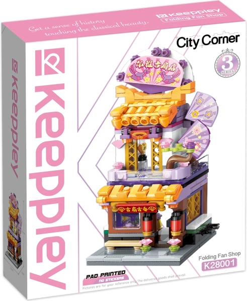 Proširite svoju gradsku kolekciju elegantnom trgovinom lepeza i uživajte u živim bojama i detaljnom ukrašavanju. Set je dio serije City Corner i savršeno će se uklopiti u vašu ulicu s različitim lokalima. Zahvaljujući kompatibilnosti s drugim setovima, dijelove lako povezujete i stvarate originalnu scenu.