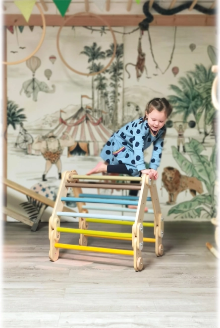Ova puzalica ljestve izrađena je od kvalitetne kombinacije šperploče i masivnog drva, što osigurava njihovu izdržljivost i stabilnost. Zahvaljujući mogućnosti sklapanja u nekoliko oblika, nudi široke mogućnosti igre i također je iznimno skladišna. Idealno za razvoj ravnoteže i motoričkih vještina djece, a može se koristiti i u terapijske svrhe.