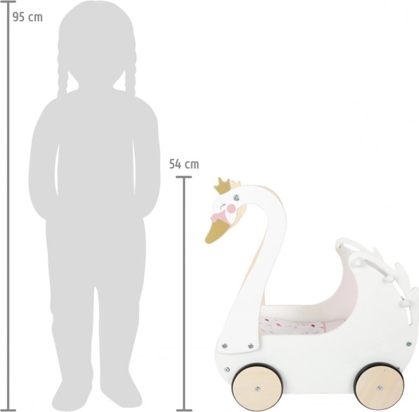 Ova kolica sa svojim labuđim oblikom i cvjetnim motivima dopunjuju estetiku svake dječje sobe.