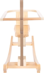 Sigurnost je na prvom mjestu: odvojiva ograda i visoki naslon drže manje jahače u sedlu, graničnici osiguravaju mirno njihanje, a široke klizače daju stabilnost. Sedlo na visini od 26 cm omogućuje udobno sjedanje i mlađoj djeci.