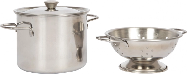 - Lonac s poklopcem i cjedilo, sve realistično izrađeno od izdržljivog metala,
