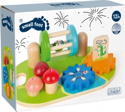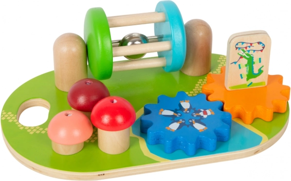 Drvena ploča nudi razne pokretne elemente poput zupčanika i spužvica za razvoj fine motorike.