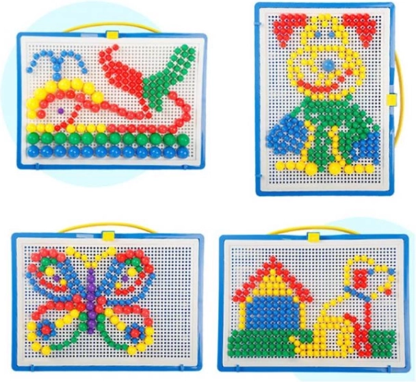 Set sadrži uzorke slika koje vaše dijete može sastaviti, ali ne mora biti ograničeno na njih — pustite mašti na volju! Razvija kreativno razmišljanje, osjećaj za boje i učenje slaganja boja.