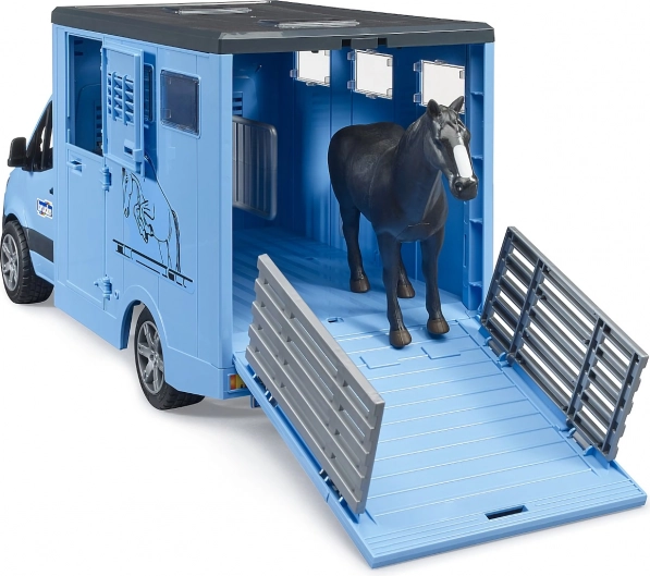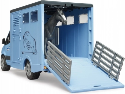 Ovaj detaljno izrađen prijevoznik konja temelji se na popularnom gospodarskom vozilu MERCEDES‑BENZ Sprinter. Djecu će oduševiti funkcionalna kabina s otvorivim vratima, realistična sandučasta nadogradnja za sigurnu prijevoz i bogate mogućnosti igre – od ukrcaja preko rampe do pregrade prilagođene za dva konja.