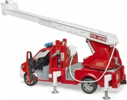 Ljestve su izvlačne i omogućuju rotaciju, dok stabilizacijske noge osiguravaju sigurnost tijekom igre. Vozilo ima otvoreni pretinac koji može služiti za spremanje dodatne vatrogasne opreme. Kabina je kompatibilna s figuricama iz kolekcije BRUDER BWORLD.