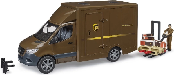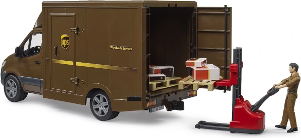 Dostavno vozilo UPS Bruder MB Sprinter s figurom i opremom donosi beskrajne mogućnosti zabave zahvaljujući detaljno razvijenom dizajnu i funkcionalnosti. Model u mjerilu 1:16 izrađen je od visokokvalitetnih materijala i omogućuje realističan doživljaj igre.