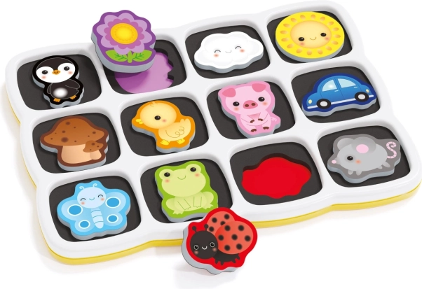Zabavna i edukativna igračka za najmlađe koja pomaže razvijati motoričke vještine te prepoznavanje oblika i boja uz pomoć šarenih magnetskih dijelova.
