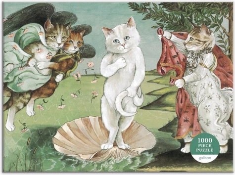 Klasična umjetnost s mačjom zaigranošću: ova slagalica pretvara Botticellijevo Rođenje Venere u duhovitu mačju scenu ilustratorice Susan Herbert. Sadrži 1000 dijelova s preciznim izrezom za glatko slaganje, pakirana je u čvrstu kutiju s mat površinom te uključuje i slikovnu predlošku. Sjajan izbor za ljubitelje mačaka i umjetnosti od 8 godina naviše.