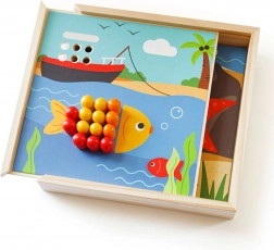 Drvena mozaička Plaža BIGJIGS TOYS donosi djeci kreativno slaganje s raznobojnim čepićima. Postavljajte ih prema predlošcima ili vlastitoj mašti i stvarajte vesele plažne motive. Zahvaljujući kompaktnoj kutiji, koja služi i kao podloga, igračka je uvijek uredno posložena i spremna za upotrebu.