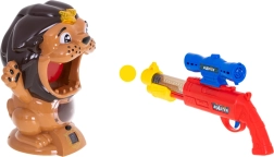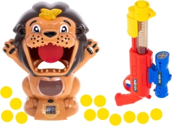 Ubaci lopticu točno u usta i postani kralj džungle! Interaktivna meta u obliku lava nagradit će precizan pogodak karakterističnim rikanjem i na digitalnom zaslonu pribrojiti bodove. Ručni blaster s opružnim mehanizmom i gornjim ciljnikom olakšava ciljanje, a mekane pjenaste loptice nježne su i sigurne za igru u dječjoj sobi.