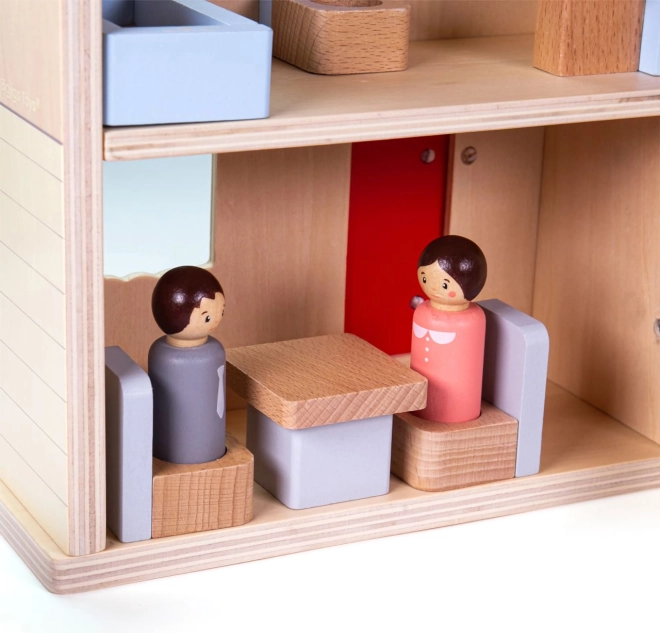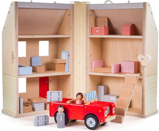 Uključeno je 13 komada namještaja, 2 drvene figurice i crveni autić za još više priča i interakcija.