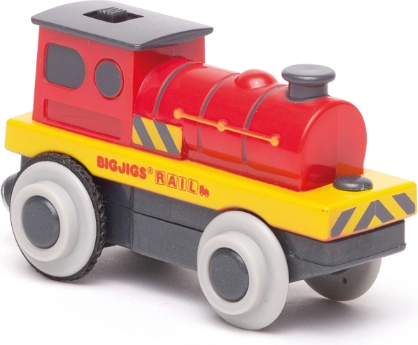 Pokrenite svoju drvenu željezničku prugu s električnom lokomotivom od Bigjigs Rail. Zahvaljujući baterijskom pogonu juri po tračnicama, lako vuče vagone putem magnetskih spojnica i uz gumene obloge na kotačima ima gladak zahvat bez proklizavanja. Čvrsta i izdržljiva izrada u atraktivnoj crvenoj boji te kompatibilnost s većinom željezničkih setova jamče sate kreativne igre.