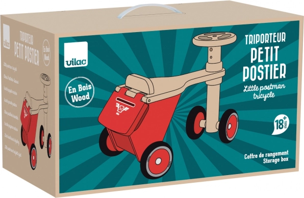 Guralo Vilac Mali Poštar idealan je izbor za svako malo dijete koje voli kretanje i otkrivanje novih mogućnosti. Opremljeno je praktičnim kovčežićem za pohranu na stražnjem dijelu, gdje djeca mogu spremiti svoje omiljene igračke ili prve crteže.