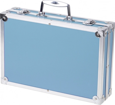 Metalno-plastični koferić s čvrstom ručkom i kopčama sigurno drži sve na okupu. Lako se nosi u školu, na radionice i na godišnji odmor.