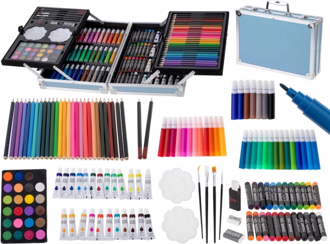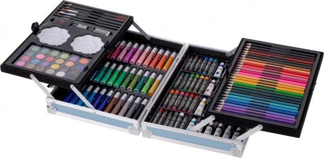 Univerzalni likovni set u praktičnom koferiću nudi sve za male i velike umjetnike. Sadrži širok izbor boja i pomagala za crtanje i slikanje – od flomastera i bojica do akvarela, boja u tubama i uljnih pastela. Kompaktan plavi koferić s čvrstim kopčama drži sve pregledno na svome mjestu i idealan je za dom, školu i putovanja. 145 dijelova za neograničenu kreativnost i razvoj mašte.