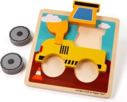 Igračka dolazi s glatkom drvenom osnovnom pločom ukrašenom oslikanom scenom, što dodatno potiče dječju maštu. Oslikano netoksičnim bojama i lakovima, ispunjava važeće europske sigurnosne norme. Prikladno za djecu od 12 mjeseci i starije.