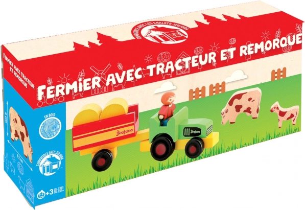 Omogućite svojoj djeci beskonačno mnogo igračkih kombinacija s drvenim figuricama farmera od Jeujura. Ovaj set sadrži pomične figurice farmera, traktor s prikolicom i dvije životinje. Odlično za razvoj dječje mašte.