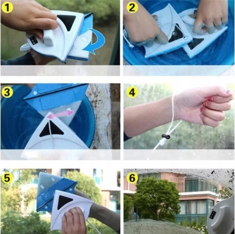 Dio kompleta je sigurnosna uzica za pričvršćivanje na zapešće, koja sprječava gubitak vanjskog dijela pri slučajnom odspajanju. Zahvaljujući snažnim magnetima oba dijela čvrsto prianjaju uz staklo i olakšavaju gladak pokret pri čišćenju.