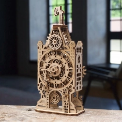 Ova precizno izrađena 3D mehanička slagalica od prirodne šperploče nije samo dekorativna, već i edukativna. Okretanjem velikog kotača pokrećete asinkroni prijenos kazaljki, klatno, vjetrokaz i druge arhitektonske detalje. Promišljena mehanika pruža gladak pokret i zorno prikazuje kako funkcioniraju osnovni satni mehanizmi.