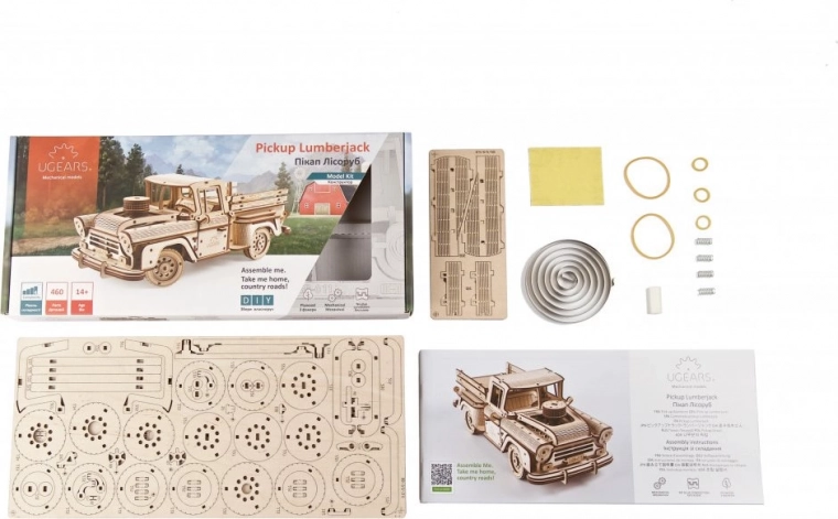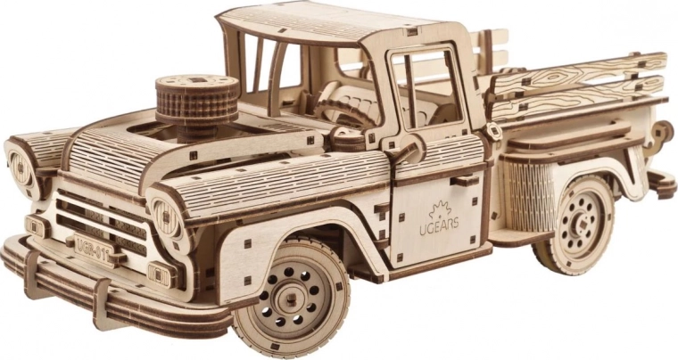 Vratite se u eru pouzdane mehanike s drvenim modelom inspiriranim legendarnim američkim pick-upom. Model nudi uranjajuću gradnju od 460 precizno izrezanih dijelova, a po dovršetku nagrađuje realističnom vožnjom, upravljanjem i funkcionalnim detaljima. Zahvaljujući opružnom pogonu i diferenciranom stražnjem pogonu, savladava glatko skretanje i stabilnu vožnju i s teretom.