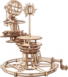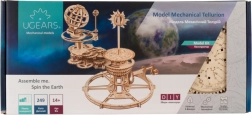 Tellurium UGEARS je predivan 3D drveni mehanički model koji prenosi principe Kopernikova sustava u vaše ruke. Ručnom ručicom pokrećete sustav zupčanika koji u točnom omjeru prikazuje rotaciju Zemlje, obilazak Mjeseca i gibanje oko Sunca, uključujući nagib Zemljine osi i ravninu rotacije Mjeseca.