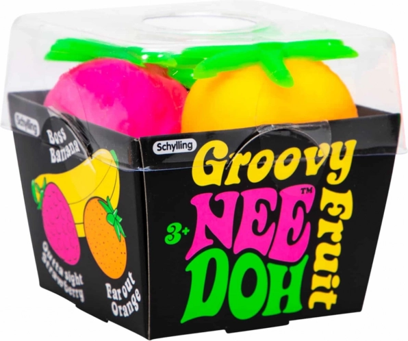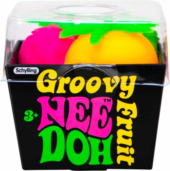 Schylling Groovy NeeDoh stiskavo voće nudi jedinstven način za uživanje u zabavi i pronalazak mira. Ove voćne loptice idealne su za igru u pokretu ili kao sredstvo olakšanja od anksioznosti. Izrađene od netoksičnog materijala koji se uvijek vraća u prvotni oblik. Omogućuju stiskanje, istezanje i povlačenje, što potiče koncentraciju i pažnju. Pogodne su za djecu i odrasle s ADD-om, ADHD-om, OCD-om, autizmom i anksioznošću.