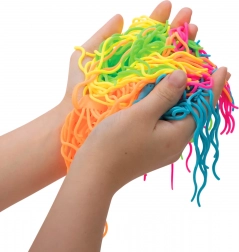 Otkrivite šarene osjetilne rezance NEE DOH NOODLIES od SCHYLLINGA – zabavnu antistresnu igračku koju možete stiskati, razvlačiti i vezati u čvorove bez nereda. Pet fluorescentnih boja pruža jedinstvenu osjetilnu stimulaciju, potiče koncentraciju i pomaže umiriti tjeskobne tendencije kod kuće, u školi i u uredu.