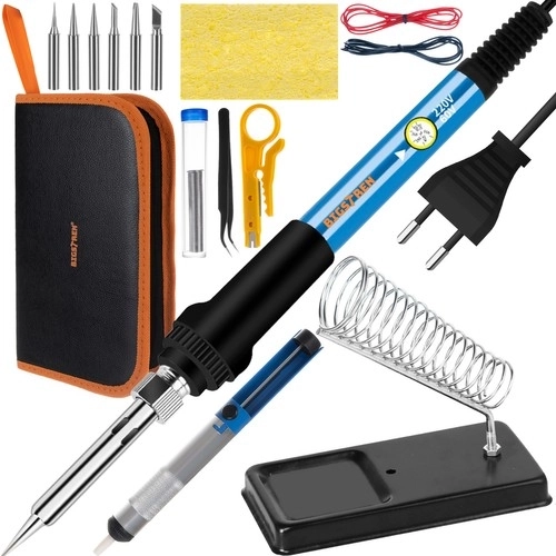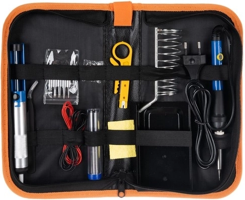 Ovaj kompletan set od 15 dijelova uključuje sve što trebate za učinkovito lemljenje. Brzo zagrijavanje u roku od 20 sekundi osigurava da možete započeti rad gotovo odmah. Ergonomski dizajn lemelice pruža udobno držanje i precizno rukovanje. Set sadrži razne komponente koje se lako prenose u praktičnoj torbici.