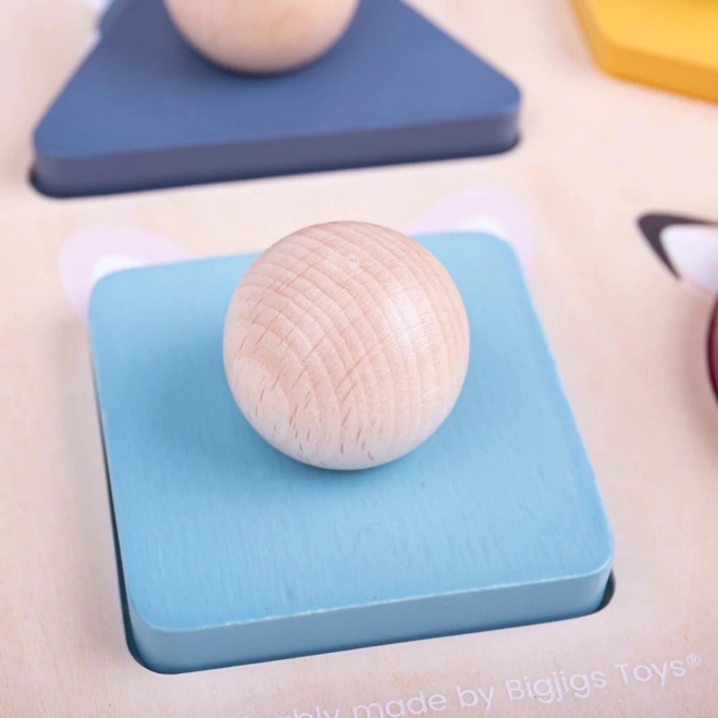 Ova kvalitetna drvena slagalica idealna je za male dječje ruke. Djeca pridružuju pojedine oblike odgovarajućim otvorima, a nakon dovršetka pred njima se pojavljuje šarena slika sa životinjama. Velike drvene ručke olakšavaju rukovanje, potiču pravilan hvat i prirodno vode razvoju fine motorike.