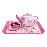 Kompletan servis s čajnikom, šalicama, tanjurićima, tacnom i višeslojnim stalkom za kolače – sve za realistično čajno druženje.