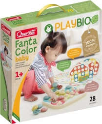 Mozaik Quercetti FantaColor Baby dio je serije PlayBio, što znači da je izrađen od 100% recikliranih materijala koji su ekološki i nježni prema prirodi. Sadrži 28 dijelova, uključujući perforiranu ploču i 21 obojeni čepić koji se lako postavljaju na svoje mjesto. Građenje s ovim mozaikom potiče: