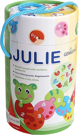 Šarena drvena slagalica u obliku gliste pomaže djeci na razigran način usvojiti redoslijed i osnovne brojeve. Robusni dijelovi su lako prihvatljivi, živo obojeni i održavaju pažnju. Izrađeno od punog drva s neškodljivim bojama, isporučuje se u praktičnoj tubi s remenom za lako prenošenje.