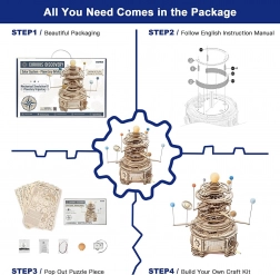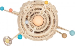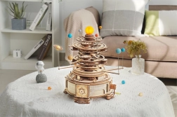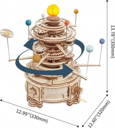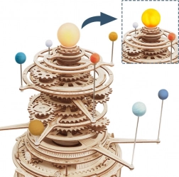 Ovaj detaljan drveni model Sunčeva sustava spaja zabavu slaganja s pametnom mehanikom. Zahvaljujući promišljenom sustavu prijenosa, ORRERY mehanizam simulira različite brzine obilaska planeta oko središta – Sunca s LED osvjetljenjem, koje se uključuje pri ručnom okretanju ručice.
