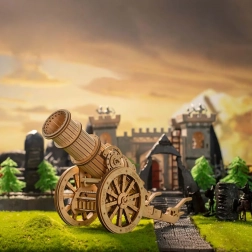 Opsadni top ROKR je razrađena 3D drvena slagalica koja spaja edukativni set, mehaničku funkcionalnost i dekorativan izgled. Zahvaljujući detaljnim gravurama, vidljivim prijenosima i autentičnom dizajnu koji podsjeća na srednjovjekovne opsadne strojeve, postat će dominanta svake police.