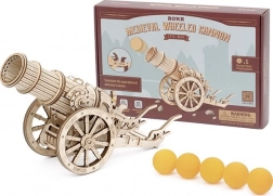 Model nudi ručno napinjani mehanizam ispaljivanja s okidačem i mogućnošću odabira kuta ispaljivanja. Cijev je prilagođena ispaljivanju standardnih ping-pong loptica, pa ćete nakon sastavljanja uživati ne samo u lijepom modelu, već i u dinamičnoj zabavi. Zahvaljujući velikim kotačima top lako premjestite i prilagodite “bojište” prema potrebi.