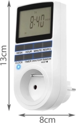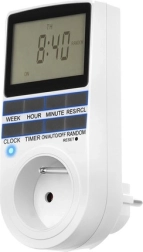 Digitalni vremenski prekidač je koristan u svakom kućanstvu, uredu ili trgovini. Omogućuje upravljanje vremenom rada uređaja i opremljen je s 8 tipki i resetom za jednostavno programiranje. Zahvaljujući čitljivom zaslonu, lako ćete postaviti trenutni čas i program.