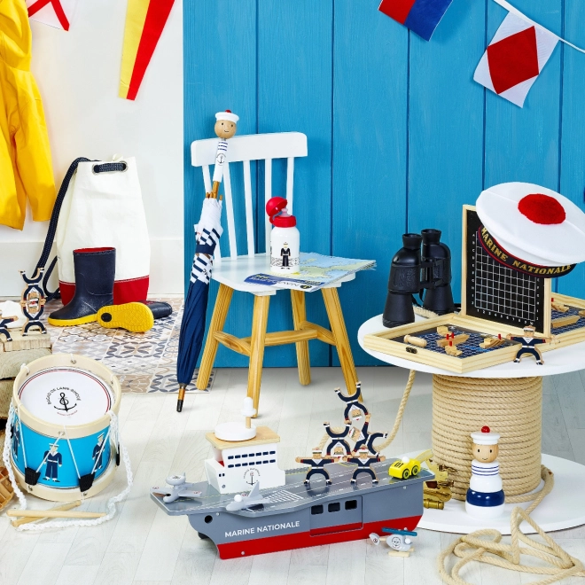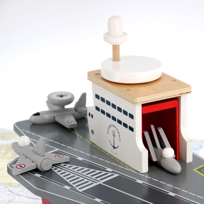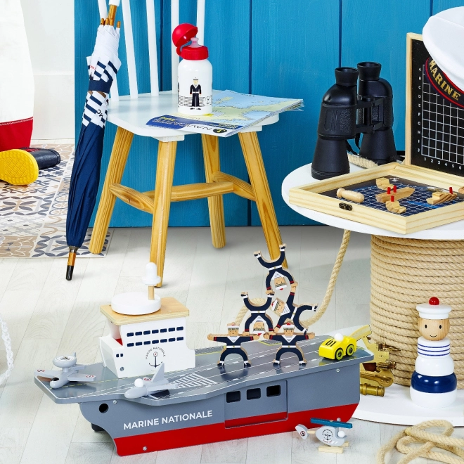 Ovaj precizno izrađen drveni nosač zrakoplova vjerno oponaša prave nosače, uključujući oznake Marine Nationale. Izrađen je od izdržljive, a ipak lagane šperploče, pa je stabilan i lak za rukovanje i mlađoj djeci. Realistični oslikani detalji i promišljeni elementi potiču maštu i donose autentičan pomorski doživljaj.