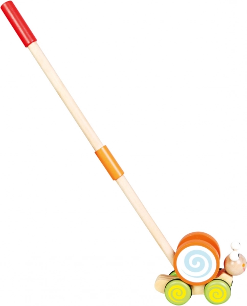 Visokokvalitetna i omiljena drvena igračka u dizajnu puža. Igračka koju dijete može gurati ispred sebe pomaže razvijati motoričke vještine. Djeca se također na ovaj način uče razlikovati boje i životinje. Guralica ima gumirana kotačića za tihi rad. Djeca je mogu gurati ili vući u kući i na otvorenom. Prekrasan dar za vaše dijete. Glavne značajke: podržava dijete u prvim koracima, zabavna i simpatična, razvija motoričke vještine