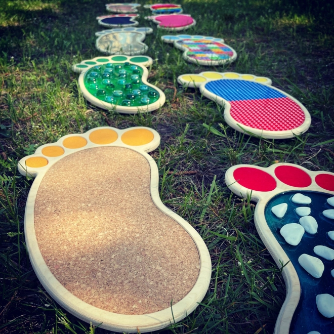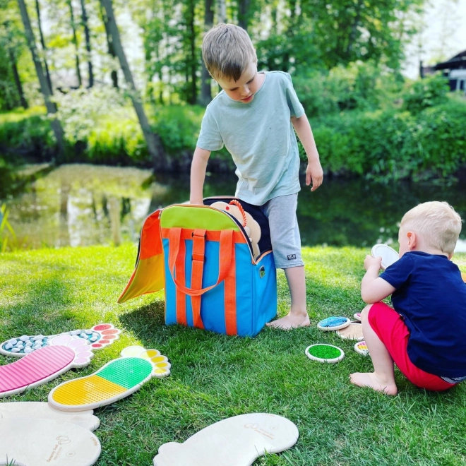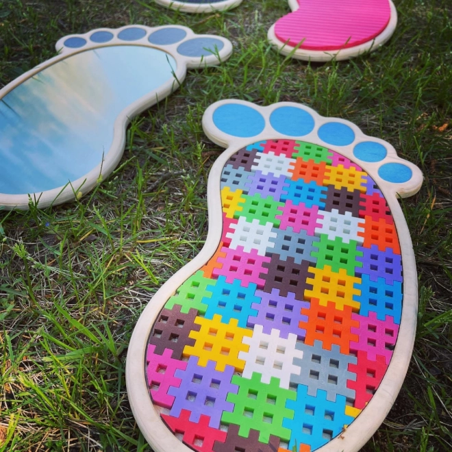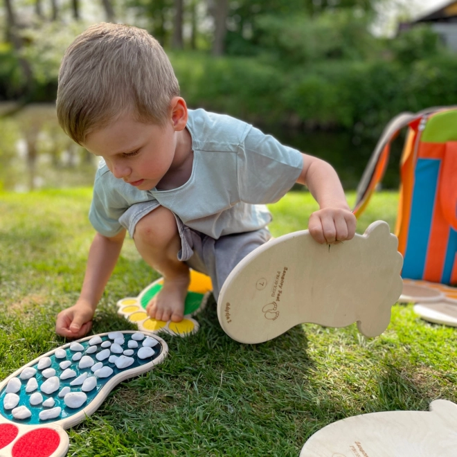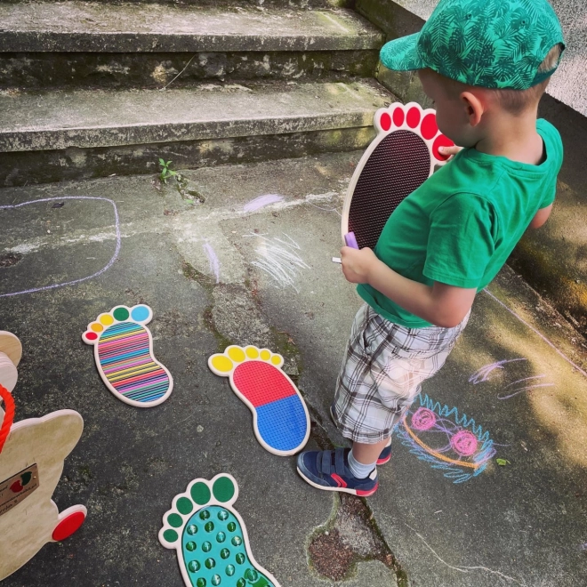 Set senzorskih tragova i krugova dizajniran je da bude čvrst i otporan, idealan za svakodnevnu upotrebu. Šareni i kreativni dizajni dodaju estetiku vašem prostoru i mogu se koristiti i za razne aktivnosti. Elegantni i izdržljivi drveni organizatori omogućuju jednostavno skladištenje seta.
