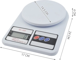Elektronička kuhinjska vaga pouzdan je pomoćnik za precizno vaganje sastojaka. Zahvaljujući maksimalnoj nosivosti od 10 kg i koraku od 1 g lako ćete odmjeriti i male i veće količine. Velik LCD zaslon omogućuje ugodno čitanje podataka, a funkcija TARE dozvoljava vaganje izravno u zdjeli ili loncu bez ručnog oduzimanja.