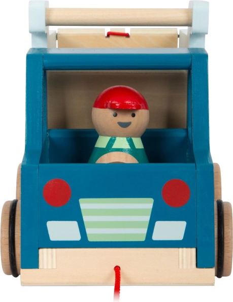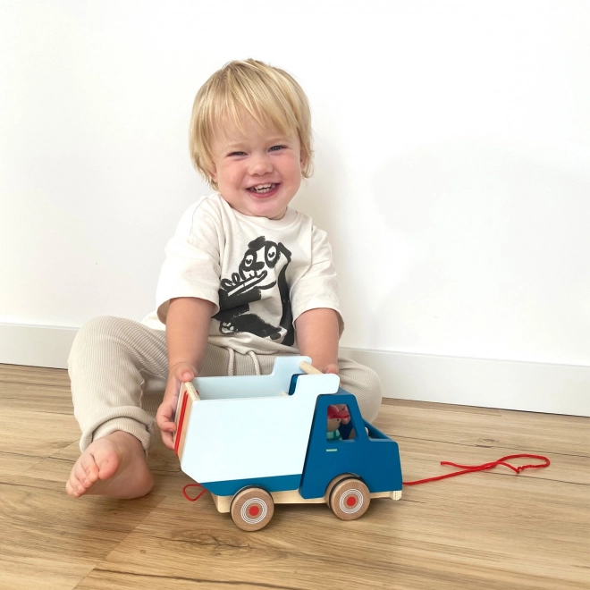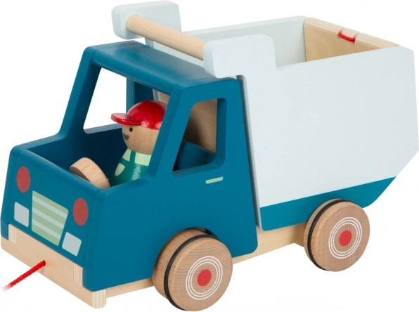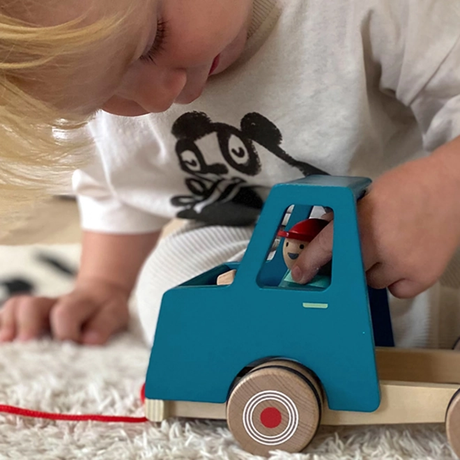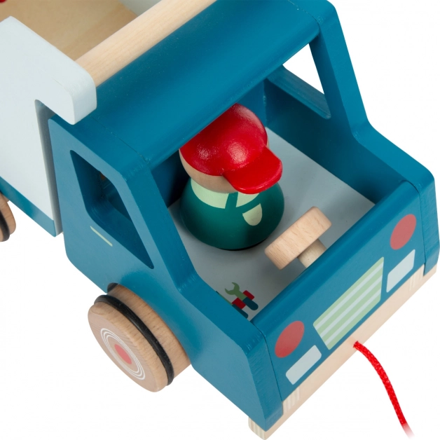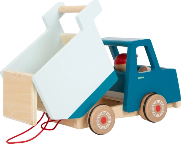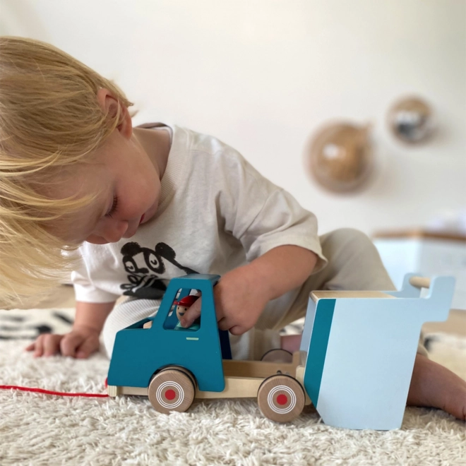 Ovaj moderni drveni kiper savršena je igračka za male graditelje. Opremljen je karoserijom koju je moguće u potpunosti podići te vozačem koji se tijekom vožnje njiše, što donosi dodatnu zabavu. Zahvaljujući gumiranim kotačićima kreće se tiho i glatko.