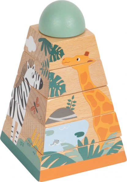 Ova igračka od izdržljivog drva pruža djeci mogućnost poboljšati svoje motoričke vještine i koordinaciju oko-ruka. Sastoji se od šest dijelova koji pri ispravnom slaganju otkrivaju vesele životinje koje nastanjuju safari. Toranj je izvrstan kao edukativno pomagalo, a ujedno estetski nadopunjuje svaku dječju sobu svojim živopisnim bojama.