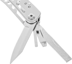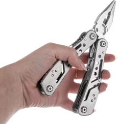 Kvalitetni nehrđajući čelik osigurava dug vijek i otpornost na koroziju. Multialat se udobno nosi u izdržljivoj futroli na čičak s omčom za remen ili ruksak. U sklopljenom stanju mjeri samo 10,5 cm i ne zauzima mnogo mjesta – idealna oprema za svakodnevno nošenje i za putovanja.