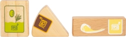 Set vegetarijanske hrane Fresh donosi djeci sve što im treba za kreativne kuharske i trgovačke igre. Drveni komadi poput mlijeka, maslaca, sira, ulja, jaja, riže, tjestenine, peciva, jabuke, rajčice, krastavca i mrkve nadopunjeni su bocom vode i vrećicom čaja. Realistični detalji, uključujući prozorčiće na pakiranjima riže i tjestenine (pri tresenju proizvode zvuk), povećavaju privlačnost i autentičnost igre.