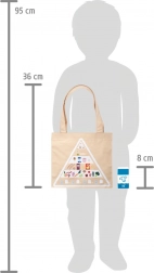 Zahvaljujući pamučnoj torbi s tiskom prehrambene piramide djeca se na zabavan način uče o pravoj prehrani, ekologiji i odgovornoj kupnji. Izdržljiva izrada od drveta i tekstila ugodna je za ruke i idealna za dječje kuhinjice i prodajne štandove. Set je kompatibilan s ostalim proizvodima linije „Fresh“.