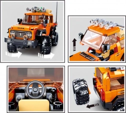 Otkrijte zabavu konstruiranja s terenskim vozilom inspiriranim američkim SUV-ovima. Model u narančasto-crnoj izvedbi s masivnim kotačima, krovnim nosačem i detaljnom maskom hladnjaka idealan je za akcijske scenarije i izlaganje na polici. Zahvaljujući čvrstoj ABS plastici, set je izdržljiv i siguran.