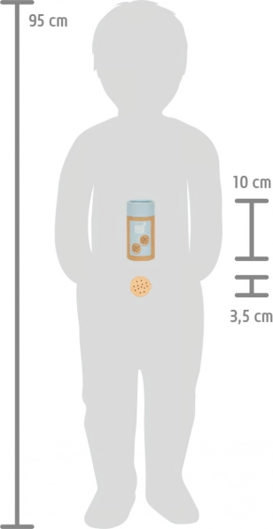 Ovih pet čvrstih drvenih keksa idealan su dodatak dječjim igrama. Ne samo da podržavaju kreativnost i maštovitu igru, nego također pomažu razvijati motoričke vještine zahvaljujući svojoj prirodnoj i realistično strukturi. Svaki keks ima čokoladno punjenje i u stanju je zadržati dječju pažnju svojim detaljima.