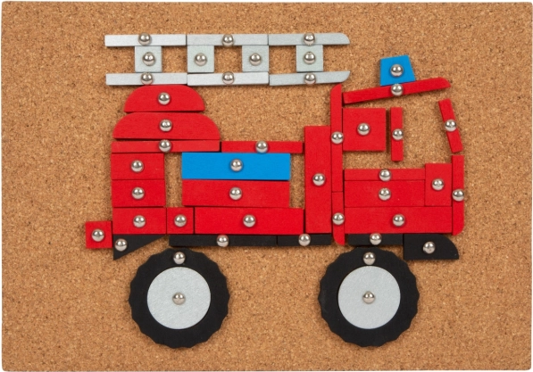 S ovom klasičnom igrom zabijanja u modernim bojama djeca mogu stvarati slike prijevoznih sredstava i građevinskih strojeva prema šest slikovnih predložaka ili prema vlastitoj mašti. Glavne značajke: