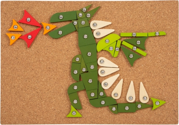 Ova igračka za zabijanje idealna je za male istraživače s maštom. Razvija motoričke vještine i podržava kreativnost kod djece. Set sadrži dijelove različitih oblika i boja koje je lako zabijati u plutenu podlogu.